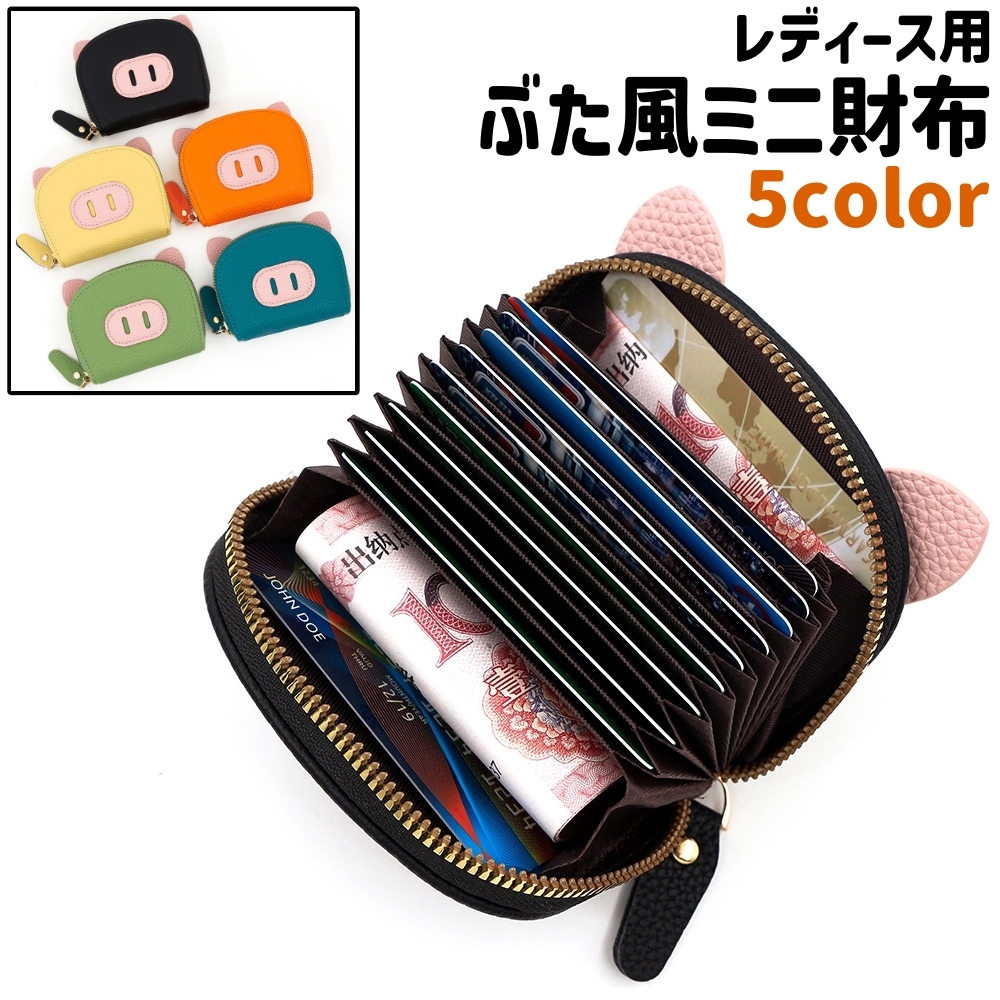 ミニ財布 ミニウォレット 小銭入れ レディース 女性 婦人 じゃばら式 ファスナー チャック ぶた風 豚風 レザー調 フェイクレザー PU かわいい