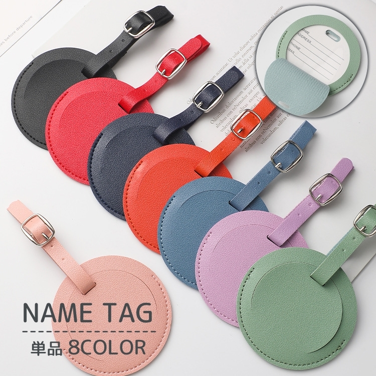 ネームタグ 目隠しカバー付き 円形 丸 レザー調 ラゲッジタグ 名前タグ ネームホルダー 旅行用 トラベル用品 紛失防止 シンプル おしゃれ かわいい