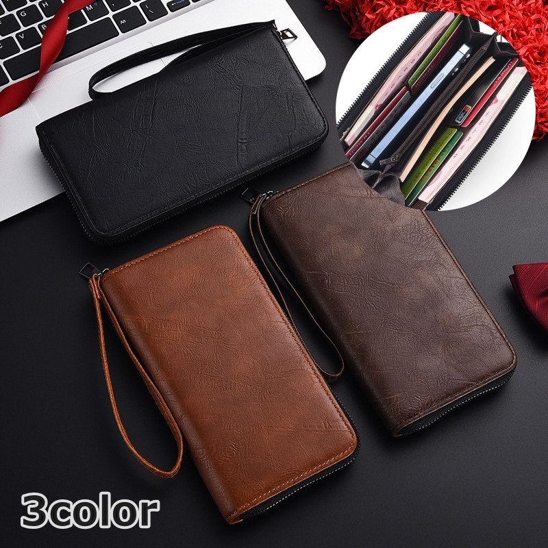 長財布 ロングウォレット メンズ 男性 カード収納 レザー調 無地 単色 シンプル かっこいい おしゃれ 大容量 スタイリッシュ