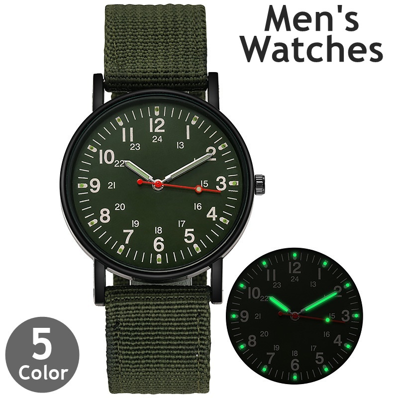 腕時計 メンズ 男性 紳士 夜光 光る リストウォッチ アナログ ミリタリー調 ラウンド キャンバス 日付表示 おしゃれ かっこいい カジュアル 通勤