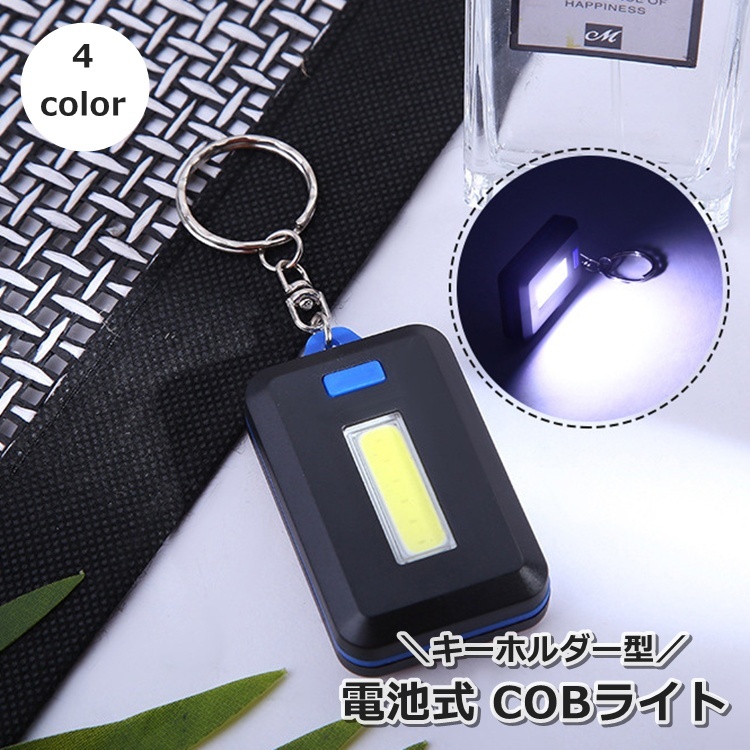 ライト COB LED 電池式 キーホルダー 懐中電灯 照明 ミニ 小型 持ち運び 夜間 散歩 ウォーキング アウトドア 防犯