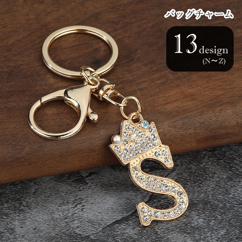 王冠をかぶったアルファベット(N〜Z)のチャームが可愛いバッグチャーム。