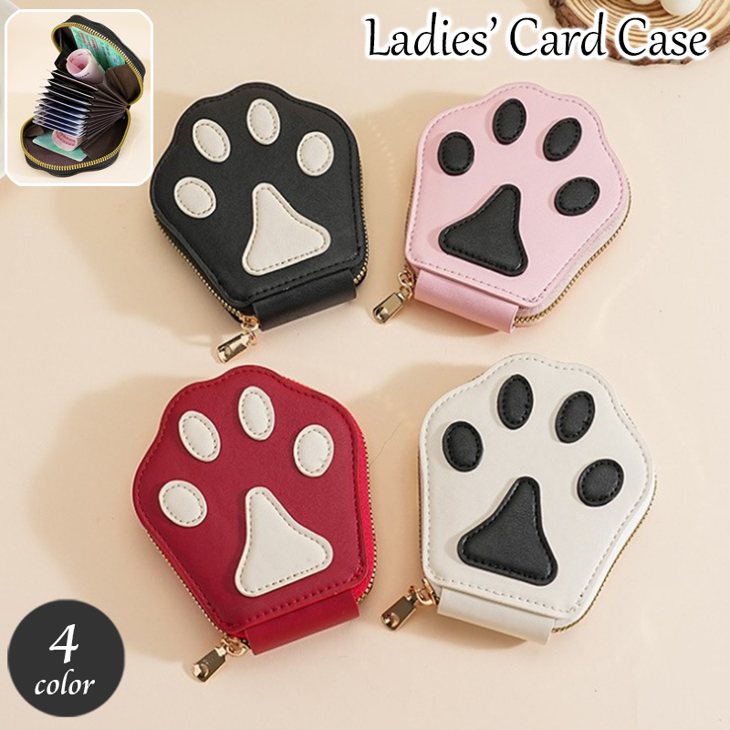 カードケース カード入れ カードホルダー レザー調 肉球 犬 イヌ いぬ 猫 ネコ ねこ アニマル じゃばら ファスナー おしゃれ かわいい レディー