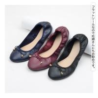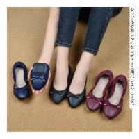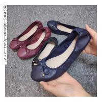 バレエシューズ レディース 靴 パンプス ラウンドトゥ 黒 ブラック ネイビー ワイン レザー調 おしゃれ リボン シンプル フラットソール 歩きやす