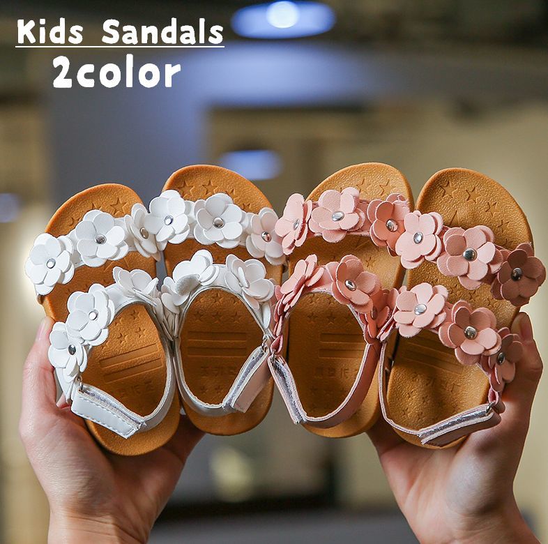 サンダル 子ども用 キッズ お花 フラワー 可愛い カジュアル オシャレ お出掛け お散歩 テープ 13.5 14 14.5 15 15.5 17 1