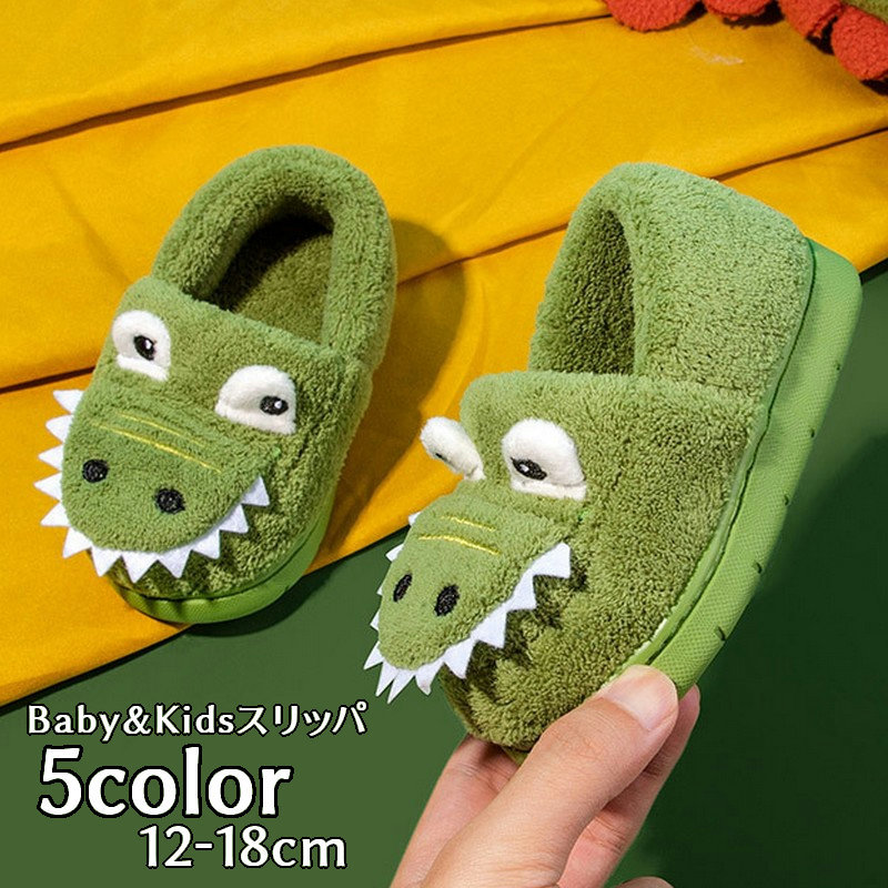 ルームシューズ スリッパ 子供用 ベビー キッズ 男の子 女の子 室内履き スリッポン フラット 起毛 ワニ もこもこ ふわふわ おしゃれ かわいい