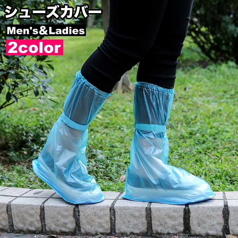 シューズカバー レインシューズ 靴カバー ロング丈 ブーツタイプ 面ファスナー マジック テープ 男女兼用 ユニセックス シンプル 無地 半透明 防水