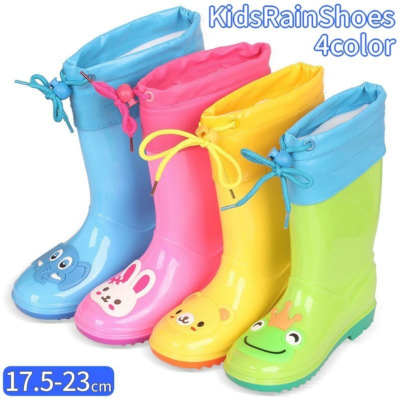 長靴 レインブーツ レインシューズ 子供 キッズ ジュニア 男の子 女の子 ボーイズ ガールズ 靴 シューズ 紐 長さ調節可能 中敷取り外し可能 二層