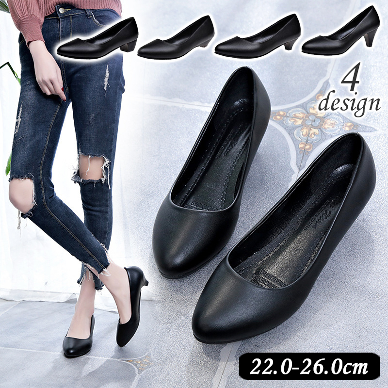 パンプス ミドルヒール ローヒール ウェッジソール 2.5cm 3cm 5cm レディース 靴 くつ クツ フォーマル ブラック 黒 仕事 就活 オフ