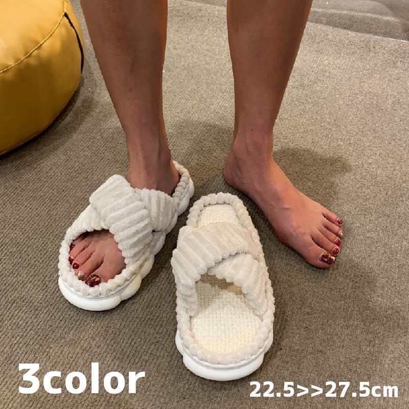 ルームシューズ スリッパ レディース 女性 クロス 室内履き ベランダ テラス 前あき オープントゥ 滑り止め サンダル シンプル かわいい おしゃれ