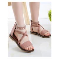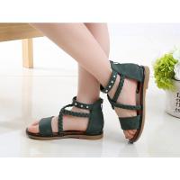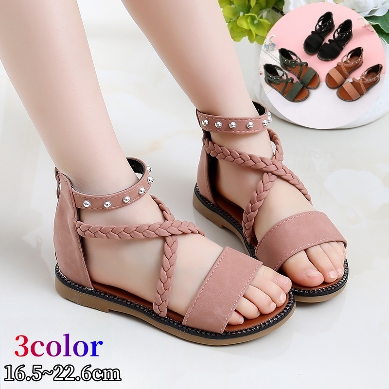 サンダル ストラップサンダル キッズ 子供 女の子 ガールズ シューズ 靴 フラット ローヒール オープントゥ ファスナー クロス レザー調 フェイク