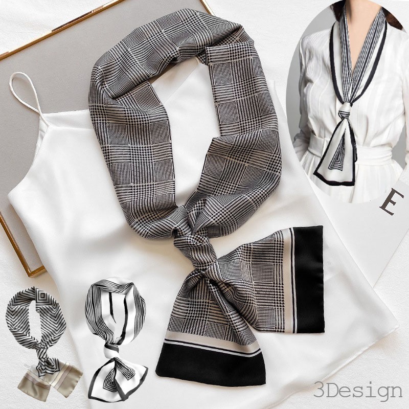 スカーフ 長方形 大判 ロング レディース 女性用 ストール 薄手 サテン調 ストライプ柄 千鳥柄 冷房対策 紫外線対策 ワンポイント おしゃれ 上品