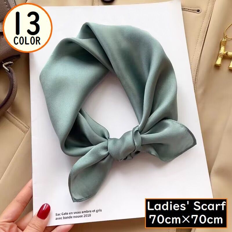 スカーフ レディース シフォン サテン風 70cm角 正方形 四角 スクエア バッグスカーフ バンダナ 無地 プレゼント ギフト