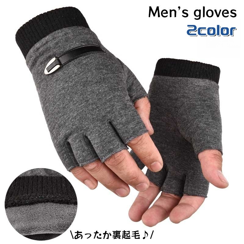 手袋 指なし グローブ メンズ 男性用 ハーフフィンガー フィンガーレス 裏起毛 あったか 暖か シンプル ベーシック スタイリッシュ 防寒 指切り