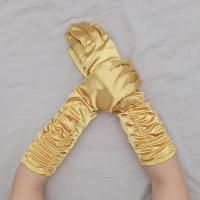 アーム部分のギャザーがおしゃれなサテン調のウエディンググローブです。