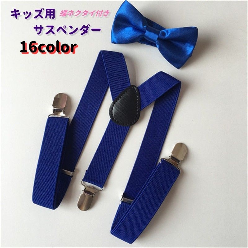 サスペンダー 2点セット 蝶ネクタイセット キッズ 子供 Y型 クリップ 蝶ネクタイ リボン 無地 シンプル フォーマル 正装 ズボン調整 長さ調整