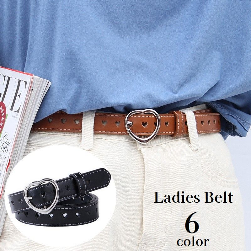 ベルト レディース 女性用 レザー調 フェイクレザー ウエストマーク ピンバックル ハート 可愛い 細め 長さ調節可能 婦人用 ファッション小物 おし