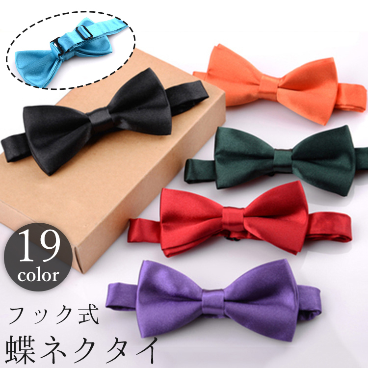 蝶ネクタイ 子供用 キッズ フック式 ボウタイ 光沢感 サテン調 結婚式 パーティ 卒業式 ウェディング ブライダル おしゃれ カラバリ豊富