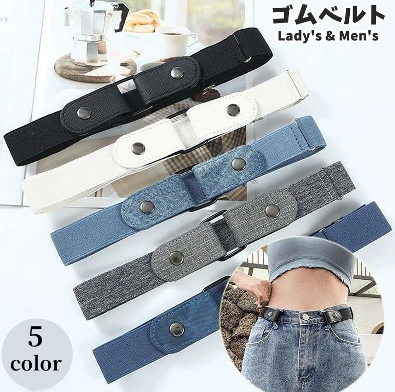 ゴムベルト ボタン式 女性 男性 レディース メンズ 男女兼用 婦人 ベルト ノーバックル ループフックベルト 裏技ベルト 伸縮 伸びる 無地 フリー