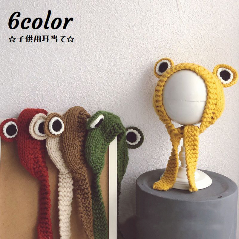耳当て イヤーマフ ヘッドバンド ヘアバンド キッズ ベビー 男の子 女の子 イヤーウォーマー カエル 目 ニット編み 暖かい 防寒 外遊び お出かけ