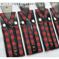 サスペンダー 吊りバンド レディース メンズ 男女兼用 ユニセックス 3点留め Y字 総柄 タータンチェック レッド 暖色 ズボン留め カジュアル か