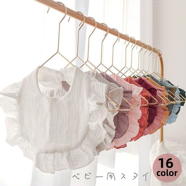 スタイ よだれかけ ベビー 赤ちゃん 乳幼児 子供 男の子 女の子 ビブ 無地 フリル スナップボタン ナチュラル かわいい おしゃれ 出産祝い プレ
