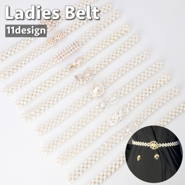 ベルト レディース 女性 フェイクパール パール調 ラインストーン 穴なし ウエストマーク スタイルアップ 華やか お洒落 上品 パーティー ファッシ