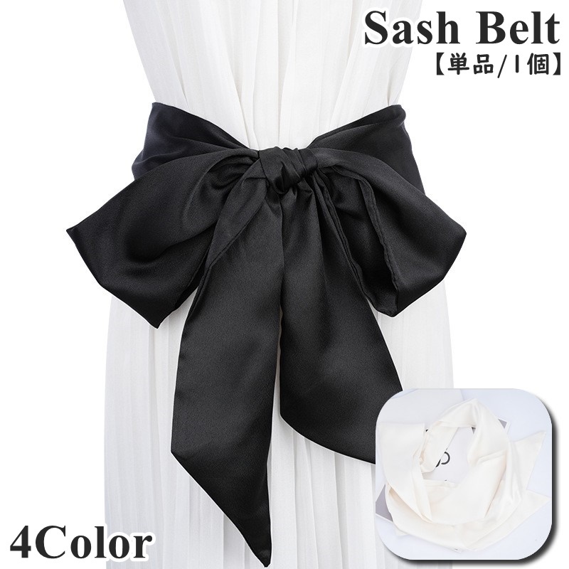 サッシュベルト ベルト 単品 1個 レディース 女性 婦人 大人女子 リボン サテン調 無地 単色 ロング サイズ調節 ウエストマーク 結婚式 パーテ