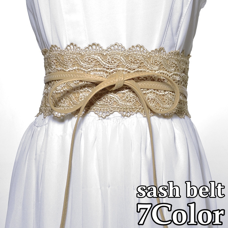 サッシュベルト レディース 幅広 リボン 巻きベルト レース ウエストマーク ウエストバンド ワイド 穴なし かわいい おしゃれ フェミニン