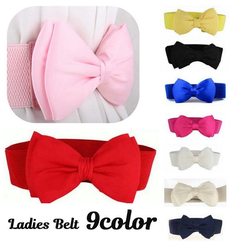 大きめリボンがかわいいゴムタイプのレディースベルトです。