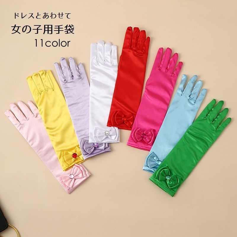 手袋 グローブ 女の子 子供用 袖 ロング ドレス用 女児 幼児 子ども キッズ ジュニア リボン付き プリンセス お姫様 結婚式 かわいい おしゃれ