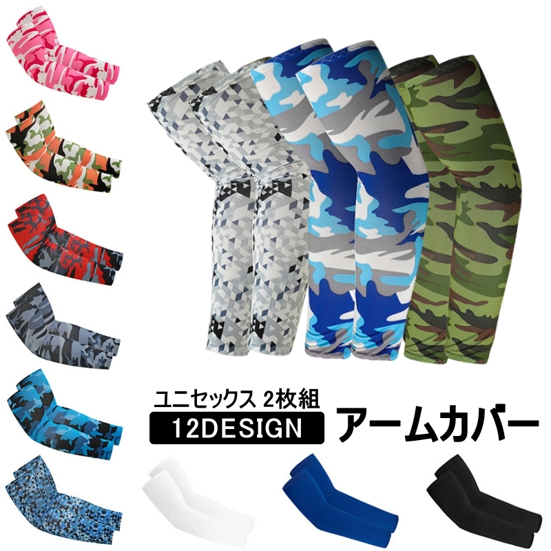 アームカバー アームスリーブ 2枚組 腕カバー 男性 女性 ユニセックス アウトドア スポーツ サイクリング 自転車 運転中 迷彩 無地 日焼け 紫外