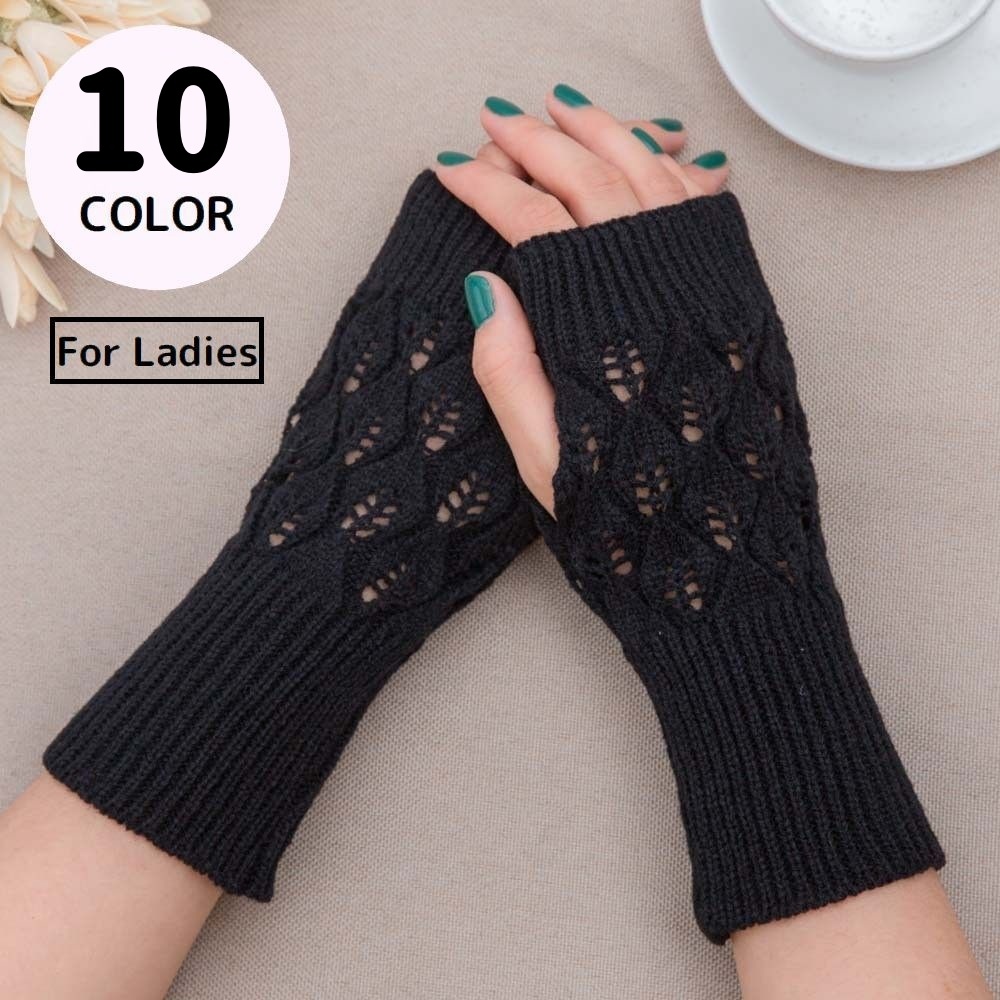 アームウォーマー アームカバー ニット レディース 手袋 グローブ ショート丈 防寒 暖かい 秋冬 指穴 指なし スマホ対応