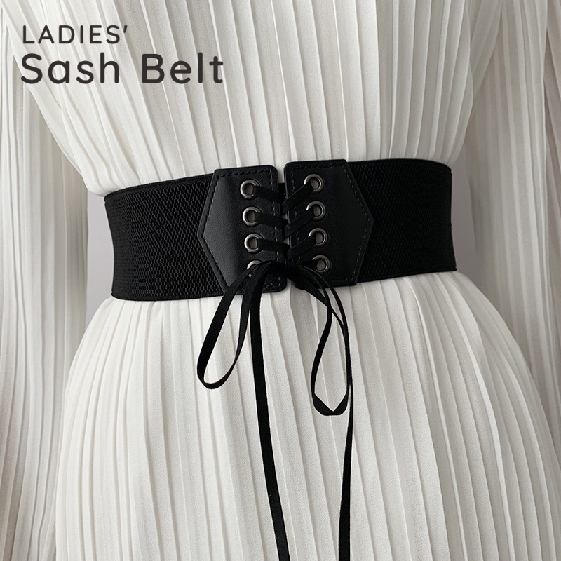 サッシュベルト ゴムベルト スナップボタン レディース 女性用 太ベルト 幅広 編み上げ レースアップ リボン 異素材 レザー調 ウエストマーク おし