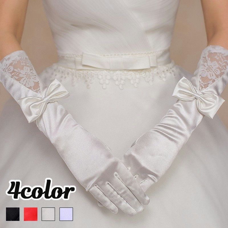ウエディンググローブ サテングローブ ミディアム丈 ドレス手袋 レディース 婦人用 ブライダル小物 レース リボン 光沢感 おしゃれ かわいい エレガ