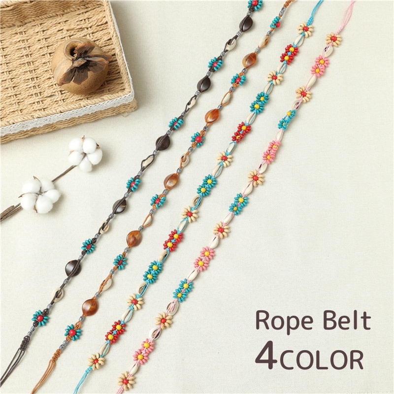 紐ベルト ロープベルト 飾りベルト レディース 女性 ビーズ かわいい おしゃれ エスニック調 ウエストマーク カジュアル 編み込み
