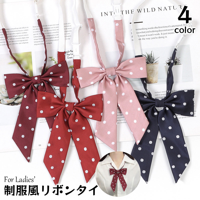 リボンタイ スクール風 制服リボン 単品 1個 ドット柄 水玉 蝶ネクタイ レディース 女性用 女子 学生服 コスプレ 学校 ブレザー カジュアル デ