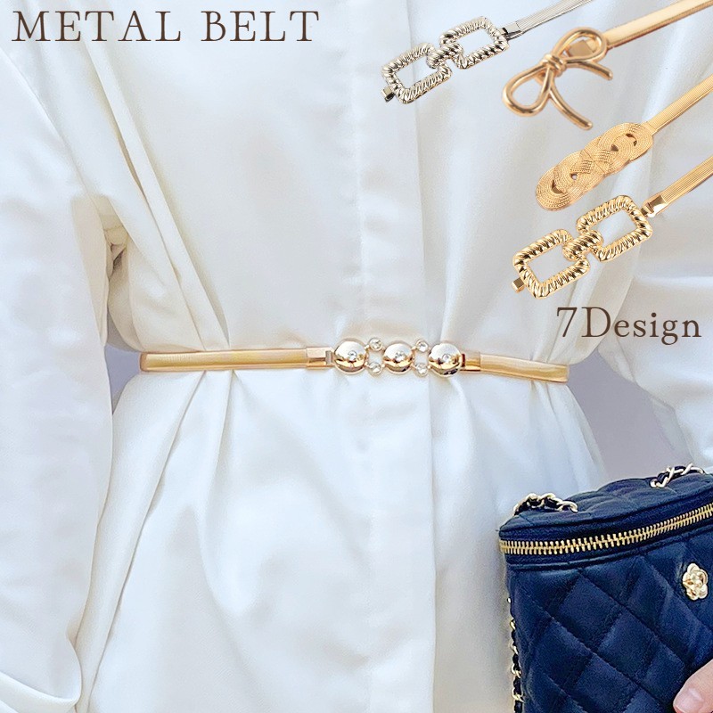 ベルト レディース 女性 ファッション雑貨 細め 細身 ウエストマーク メタル 金属製 リボン ハート ラウンド 長方形 スクエア ゴールドカラー シ