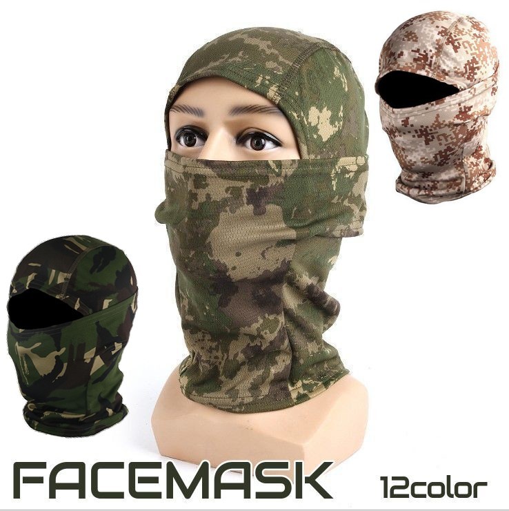 フェイスマスク フェイスカバー 目出し帽 バラクラバ フェイスガード ネックカバー 迷彩柄 総柄 アーミー 通気性 アウトドア 自転車 スポーツ メン
