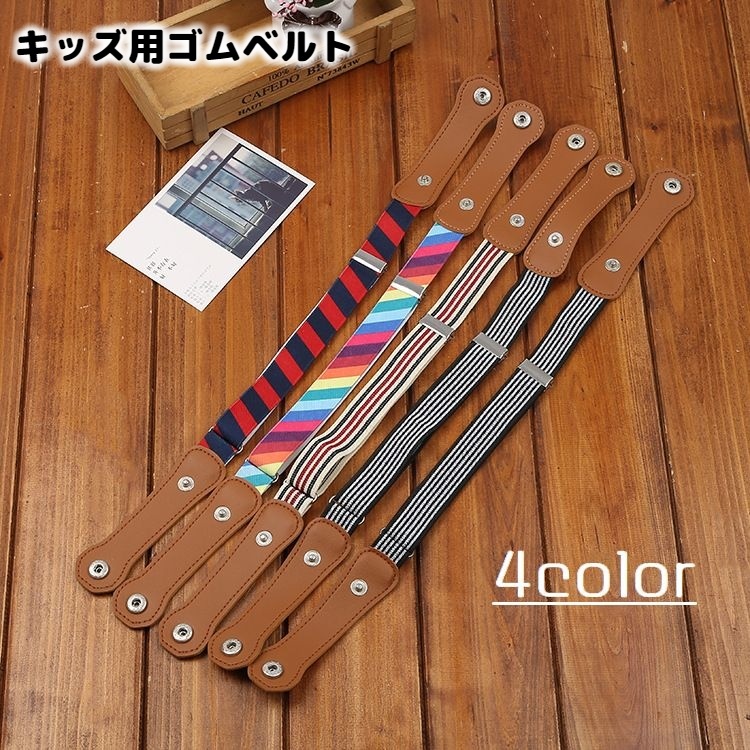 ベルト ゴム キッズ 子ども用 女の子 男の子 ループフック ノーバックル ボーダー すっきり 着替え ラクチン 簡単 調節可能 カジュアル カラフル