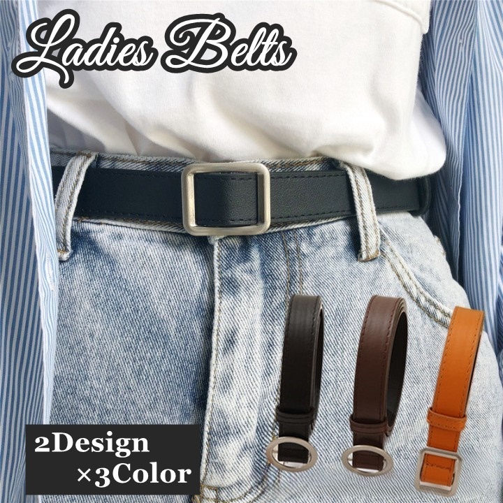 ベルト 穴なしベルト レディース 女性 穴無し レザー調 フェイクレザー 丸バックル スクエア サークル シンプル お洒落 カジュアル ウエストマーク