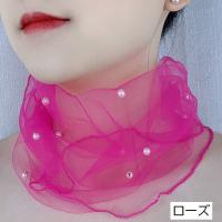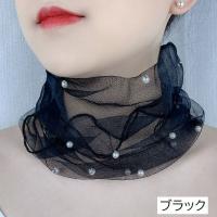 スカーフ ネックカバー レース レディース 首巻き かぶる パール調 シースルー 透け感 フェイクパール 日除け 紫外線対策 日焼け対策 UV対策 女