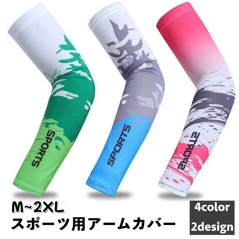 スポーツ用アームカバー アームスリーブ メンズ レディース ユニセックス プリント ロゴ 涼感 日焼け防止 紫外線対策 ランニング 運転 サイクリング