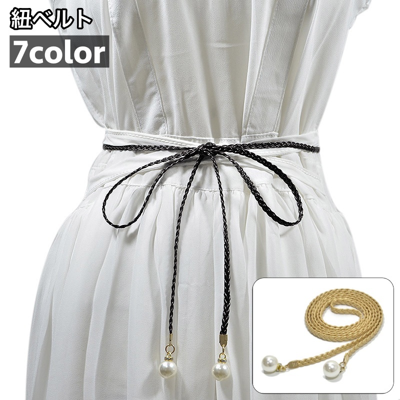 紐ベルト ロープベルト 飾りベルト 装飾ベルト レディース 女性 ベルト 紐 ロープ フェイクパール パール調 シンプル カジュアル おしゃれ ファッ