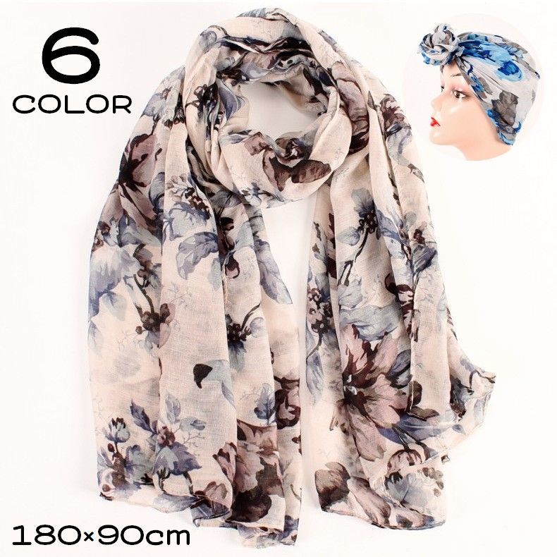 ストール スカーフ マフラー ショール ヘッドカバー レディース 大判 ロング 薄手 透け感 花柄 フラワー 長方形 上品 綿麻混