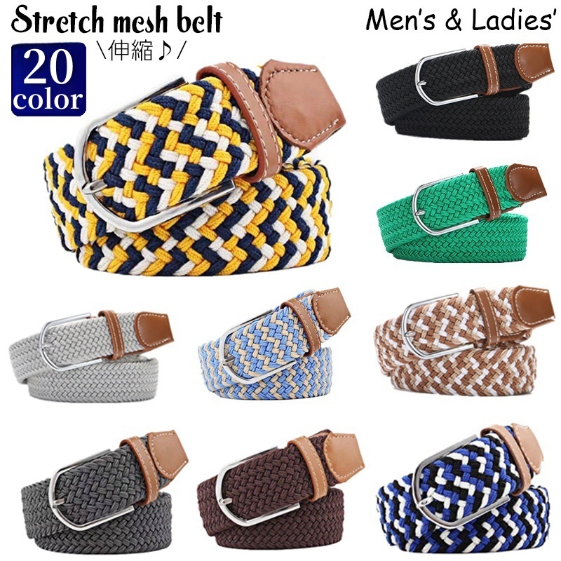 伸びるストレッチゴムの男女兼用メッシュベルト。
