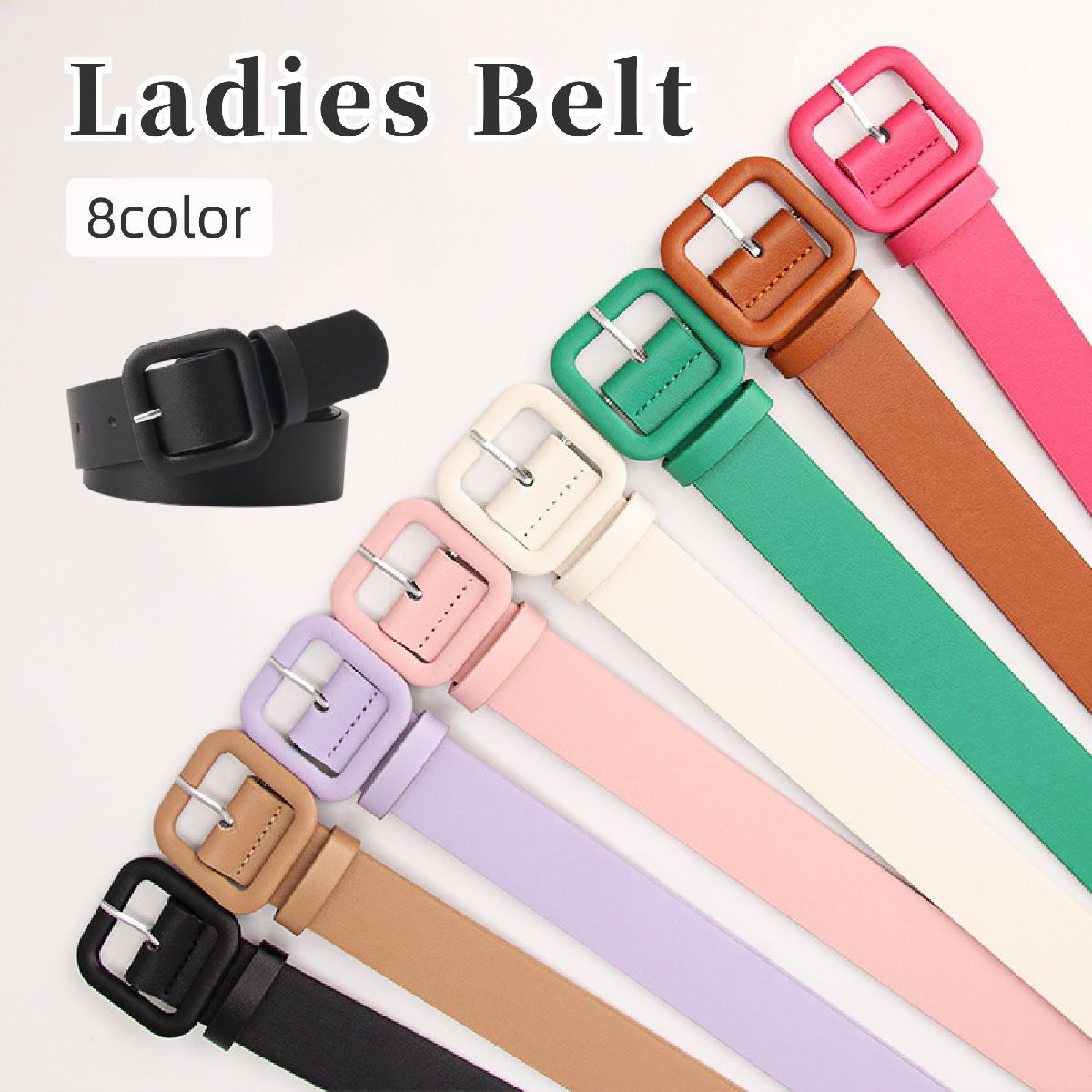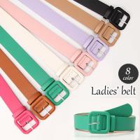 ベルト レディース レザー調 おしゃれ かわいい カラフル 無地 単色 スクエアバックル ピンバックル カジュアル きれいめ ウエストマーク おしゃれ