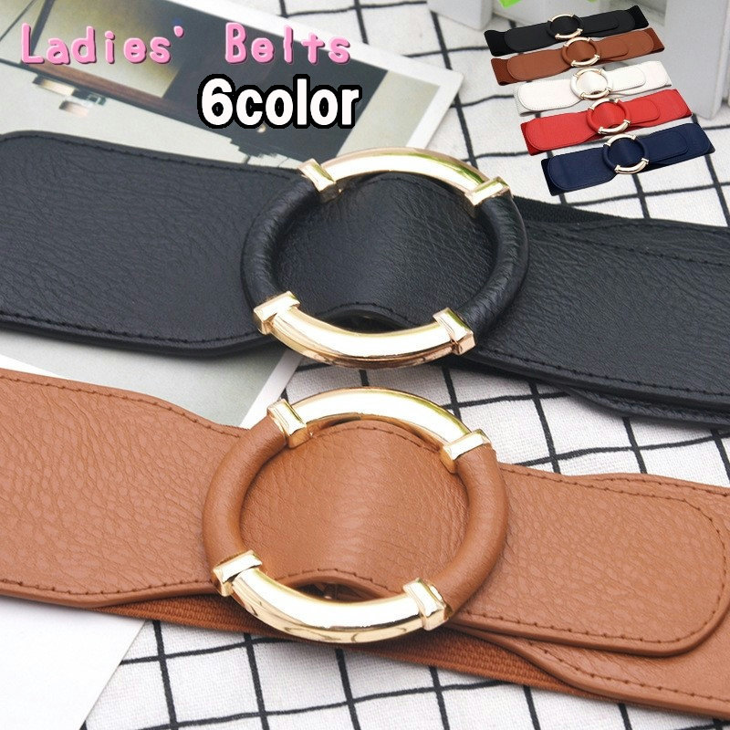 ベルト ゴムベルト レディースベルト ゴールドバックル シンプル ウェストマーク クール ハイウエスト 女性 おしゃれ パーティー 太ベルト