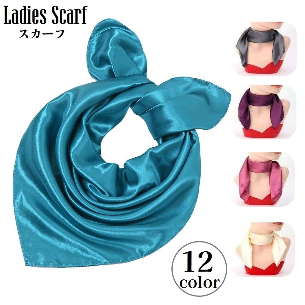 スカーフ 大判 60cm角 レディース 女性 サテン風 襟元 首元 冷房対策 紫外線対策 ファッション小物 バッグスカーフ シンプル おしゃれ お出掛