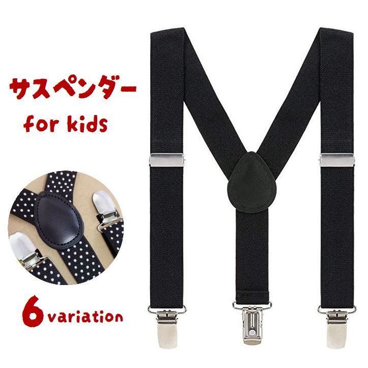 サスペンダー キッズ 子供用 男の子 女の子 Y型 吊りバンド 無地 ドット柄 通園 通学 カジュアル シンプル おしゃれ